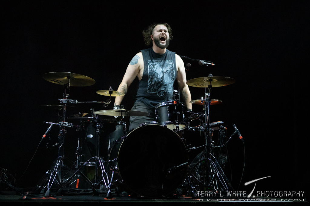 Alien Weaponry took the stage with drummer Henry de Jong leading in a traditional Māori ceremonial Haka. The band doesn’t shy away from their Māori culture, instead integrating it into their performance and their music. Their latest album Te Rā, much like their previous works contains tracks in both English and Māori. Lead singer Lewis de Jong talked about his love for Lamb of God and vocalist Randy Blythe before they played “Taniwha” which featured Randy Blythe. Alien Weaponry’s set was dynamic and thunderous, pushing the boundaries of thrash and groove. Much like their pre-show Haka, their set incorporated intense facial expressions and rhythmic body movements giving their performance a very visceral feel which complemented the music perfectly.