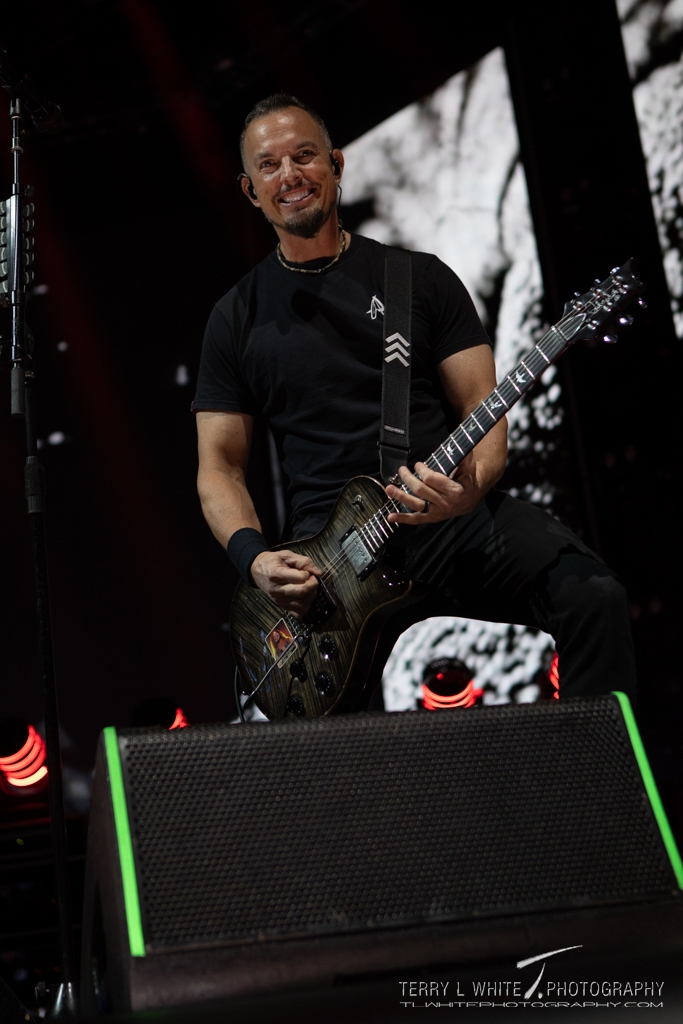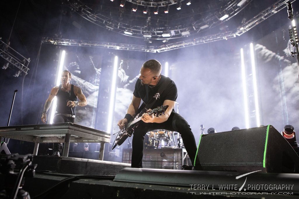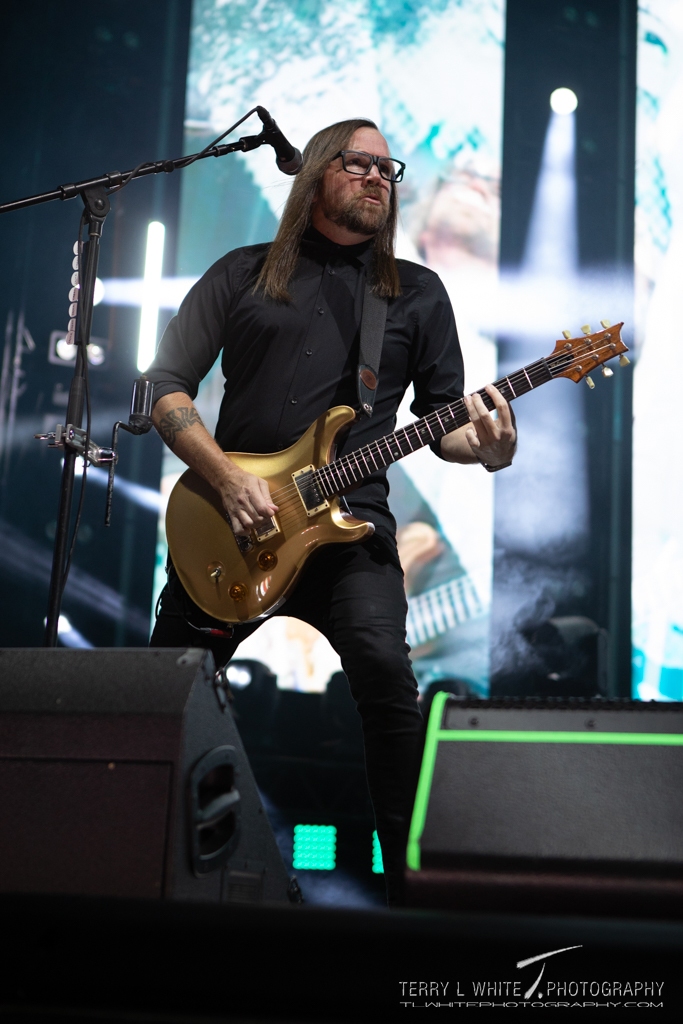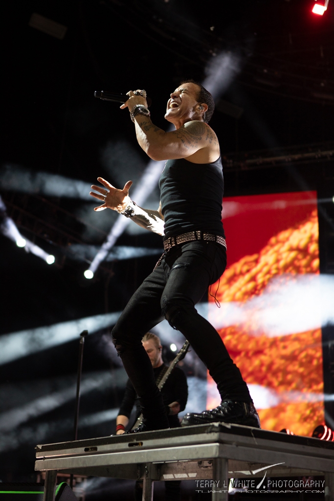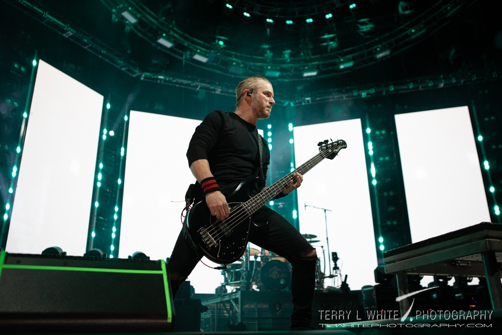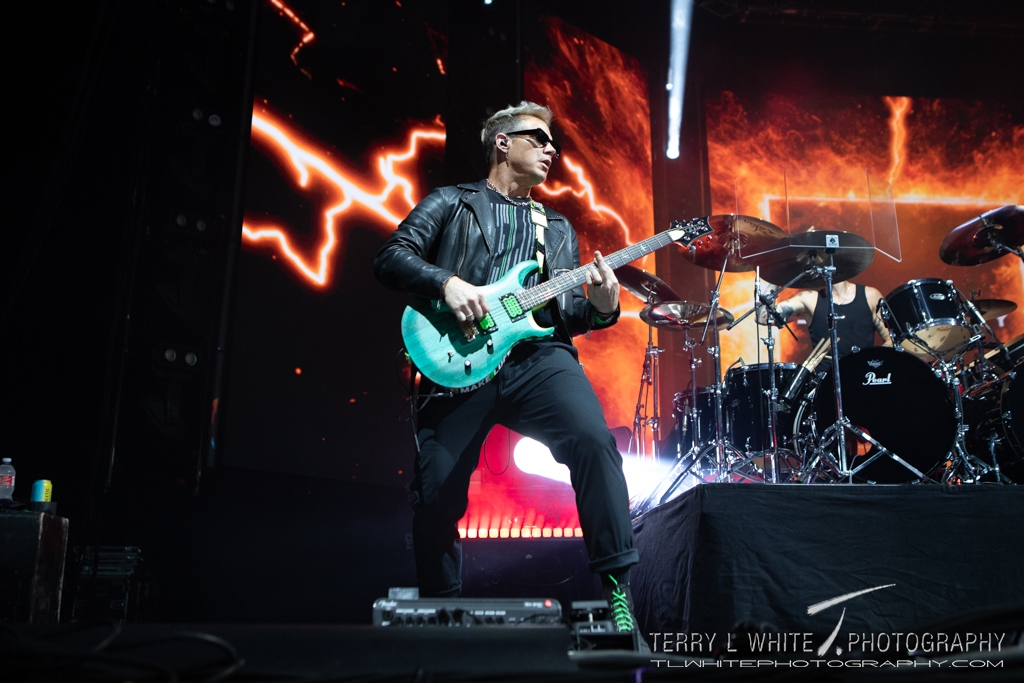 Despite the highly publicized substance abuse and mental health struggles for singer Scott Stapp, Creed put together a solid, well rehearsed performance. Before performing “My Own Prison”, Stapp talked about how “Life isn’t about the setback, it’s about the comeback” in a subtle reference to his own past as well as the larger philosophical perspective. The set list was 15 songs with most of the big hits stacked at the end. Mid way through the set, before performing “What If”, guitarist Mark Tremonti announced that the band would be giving away a guitar. Eager fans at the front of the pit all pushed forward hoping to be chosen, but a young fan named Jet got to take home that Paul Reed Smith guitar.