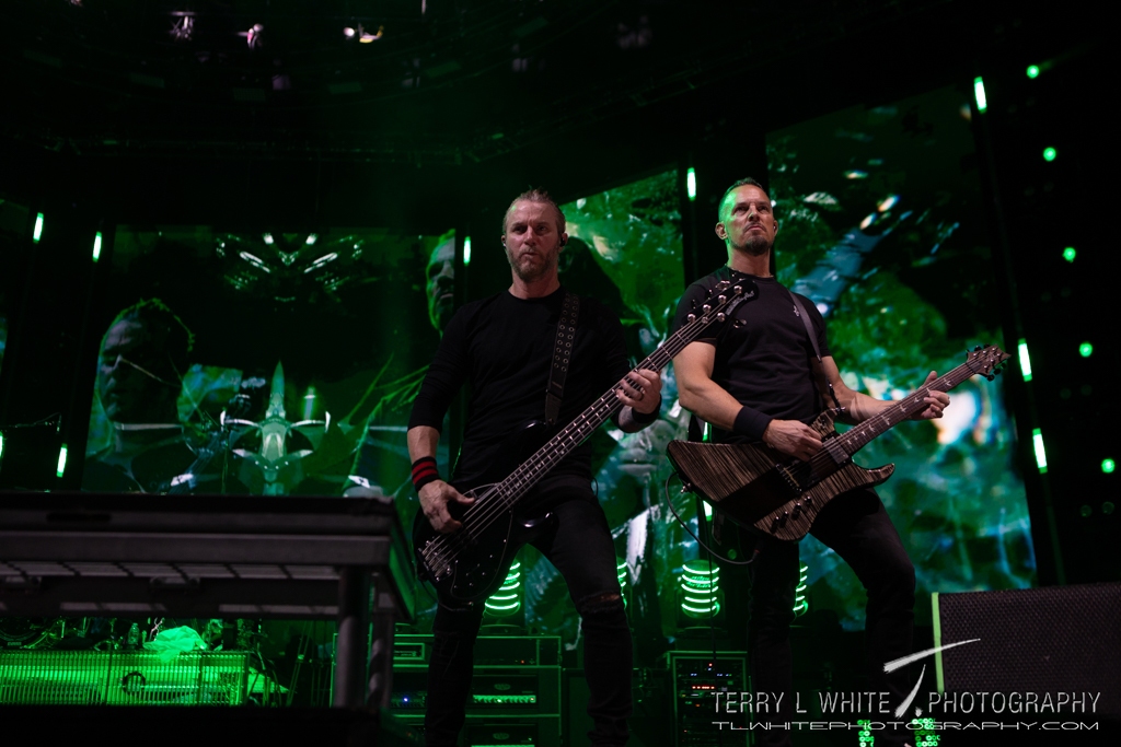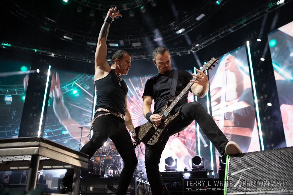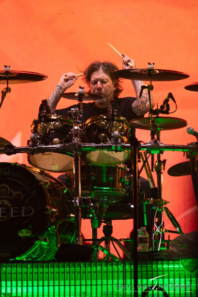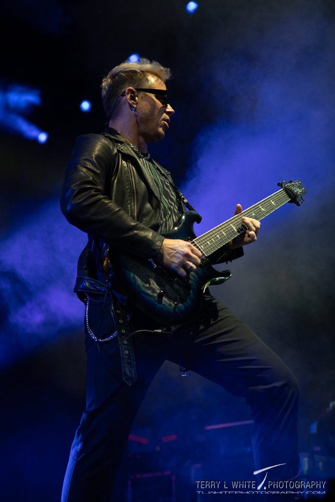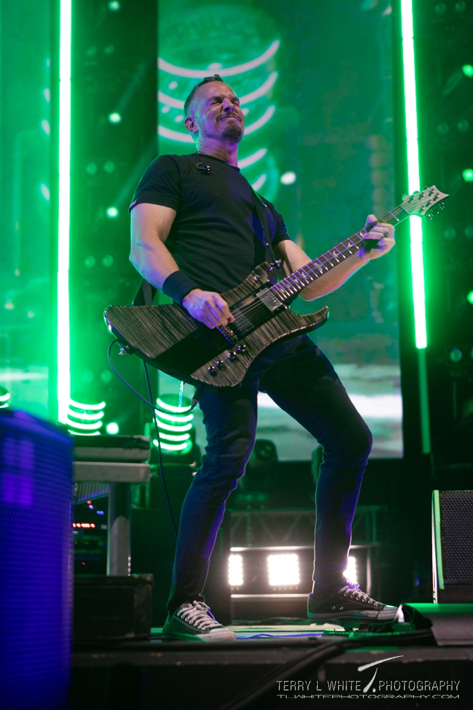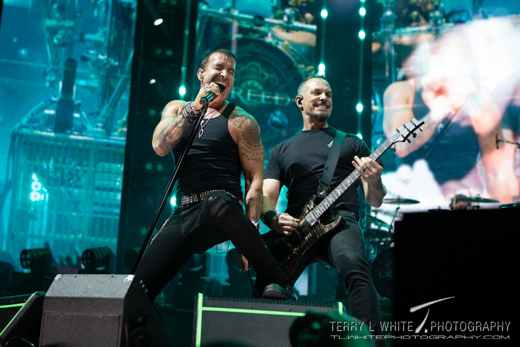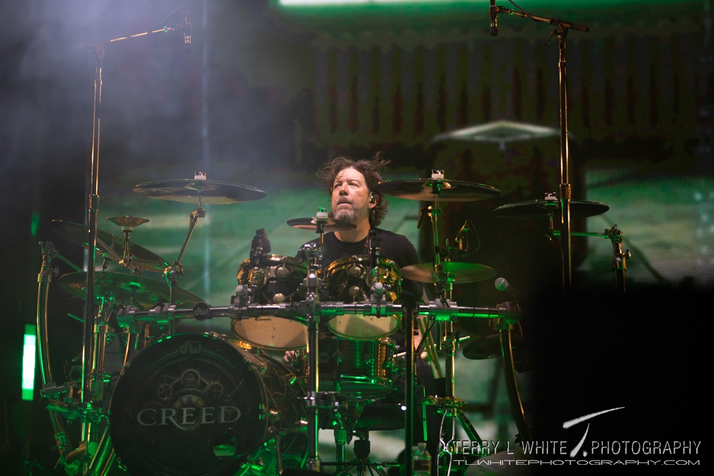 Despite the highly publicized substance abuse and mental health struggles for singer Scott Stapp, Creed put together a solid, well rehearsed performance. Before performing “My Own Prison”, Stapp talked about how “Life isn’t about the setback, it’s about the comeback” in a subtle reference to his own past as well as the larger philosophical perspective. The set list was 15 songs with most of the big hits stacked at the end. Mid way through the set, before performing “What If”, guitarist Mark Tremonti announced that the band would be giving away a guitar. Eager fans at the front of the pit all pushed forward hoping to be chosen, but a young fan named Jet got to take home that Paul Reed Smith guitar.