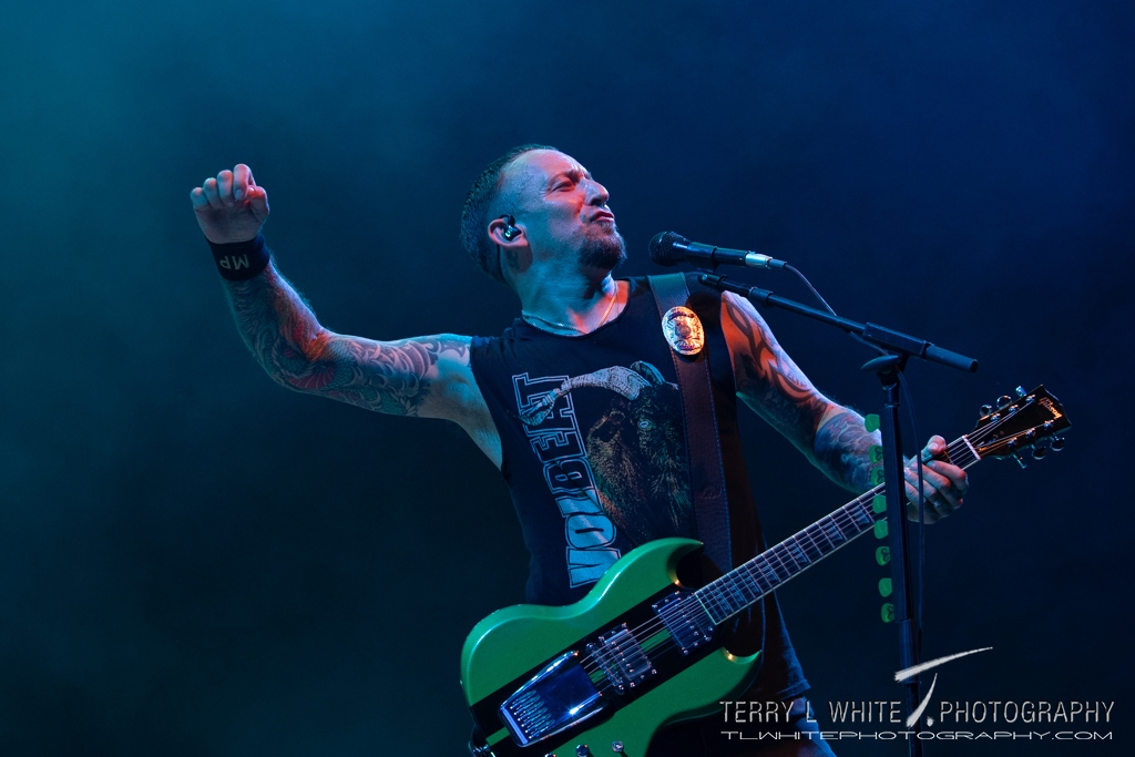Volbeat took the stage with a much more predictable selection of tracks, only slightly altering their setlist from previous sets on the tour. They played a brief homage to Ozzy with a portion of Black Sabbath’s “Children of the Grave” before kicking off their set. Just before playing “In the Barn of the Goat Giving Birth to Satan’s Spawn in a Dying World of Doom” Lead singer Michael Poulsen pointed out that Volbeat and it’s members don’t believe in any specific religious belief going on to state “It’s all crap. We’re just having fun”. Volbeat also debuted “Time Will Heal” from their most recent album God of Angels Trust.